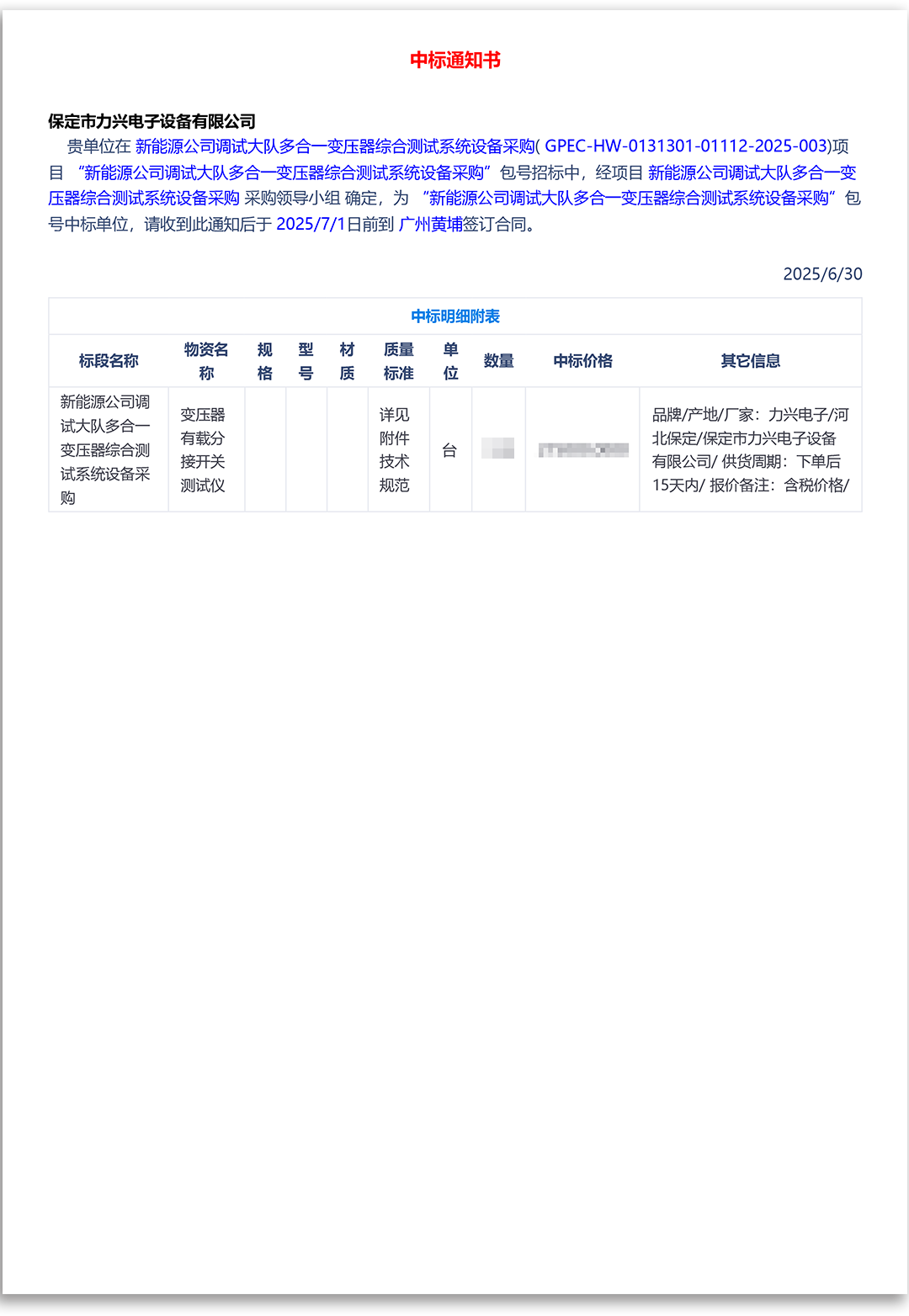 力兴电子丨2025年第二季度中标合集